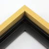 This small, L-shaped floating canvas frame in matte black features a brushed gold face.