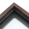 This stair step wood floater frame lets your canvas hover neatly within the simple, modern border. The frame features a Espresso Natural Wood finish with a steep upper and small lower step.